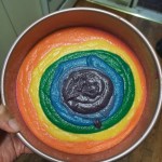 Divide batter into 7, or to however many colors you want. Ideally, you will want to have more batter on the outer color (red) and less batter for the inner color (violet). While this is optional, this will result in a more balanced looking rainbow.